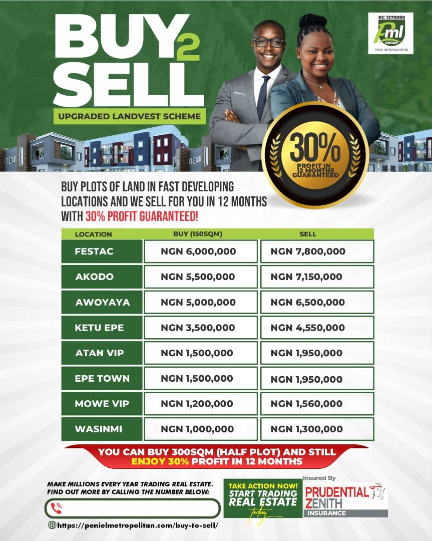 Unlike traditional land investments, you don’t have to worry about finding buyers, site inspections, or stressful negotiations. Once your holding period is complete, Peniel Metropolitan Limited buys back the land seamlessly. The PML BUY 2 SELL Project is an upgraded version of our trusted PML LandBanking Investment, already endorsed by a growing community of satisfied investors. It’s not just land—it’s a smart wealth creation tool designed for consistency, security, and profitability.