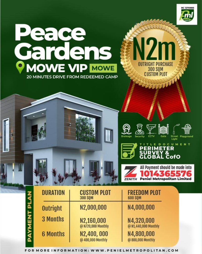 Located in peaceful, fast-growing Mowe. PML Peace Garden offers easy access to key landmarks, major roads, and essential amenities.
