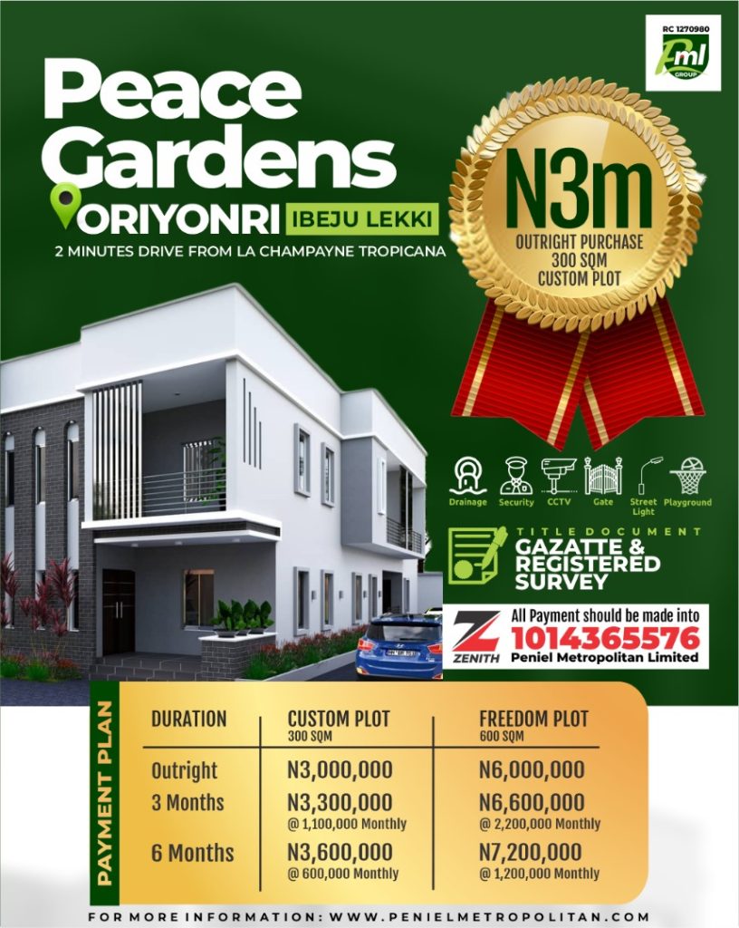 🏡 PEACE GARDENS – ONIYANRI, IBEJU-LEKKI